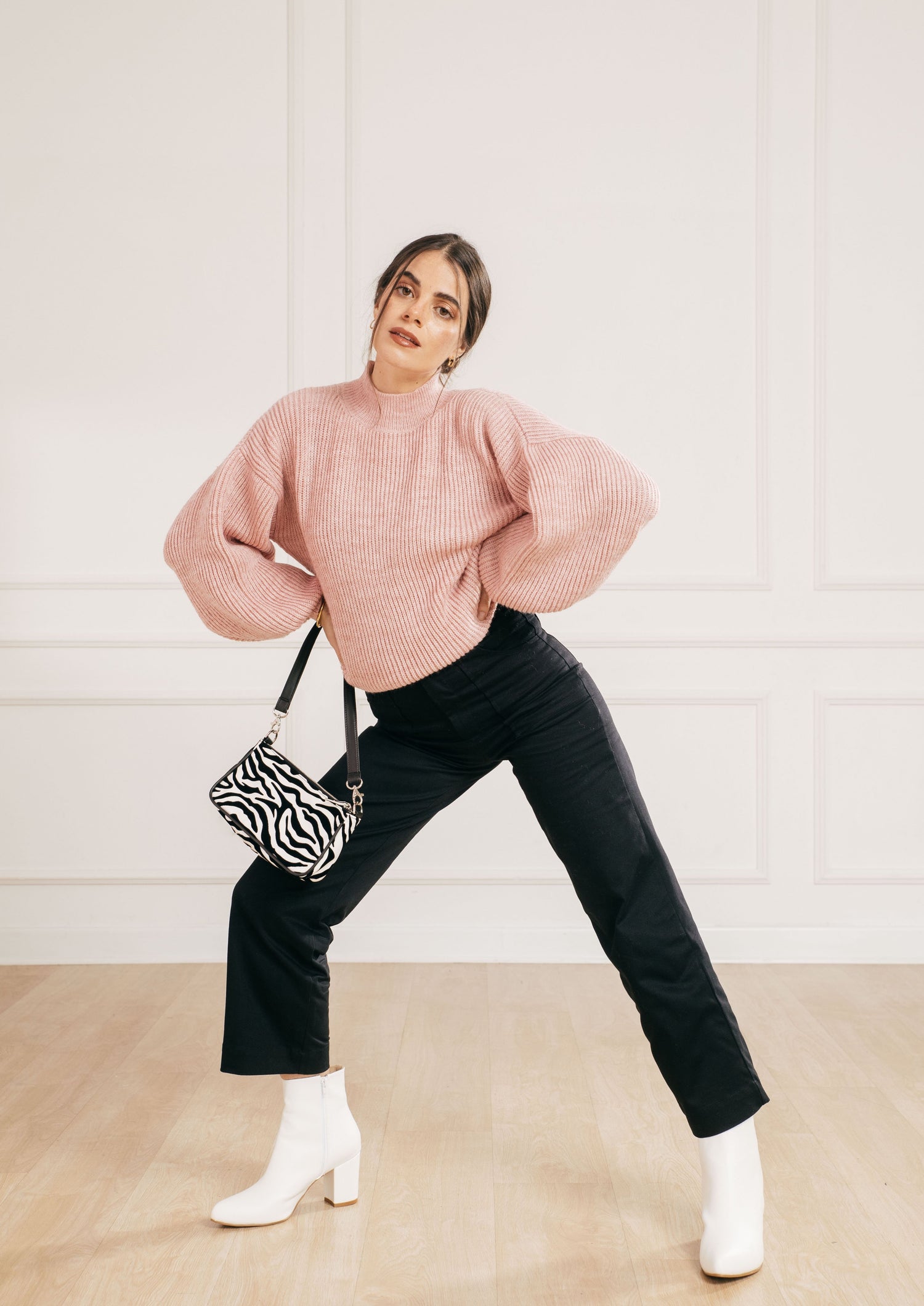 Pantalón con tiro alto, bolsillos delanteros con costura externa, cierre frontal y wide leg.